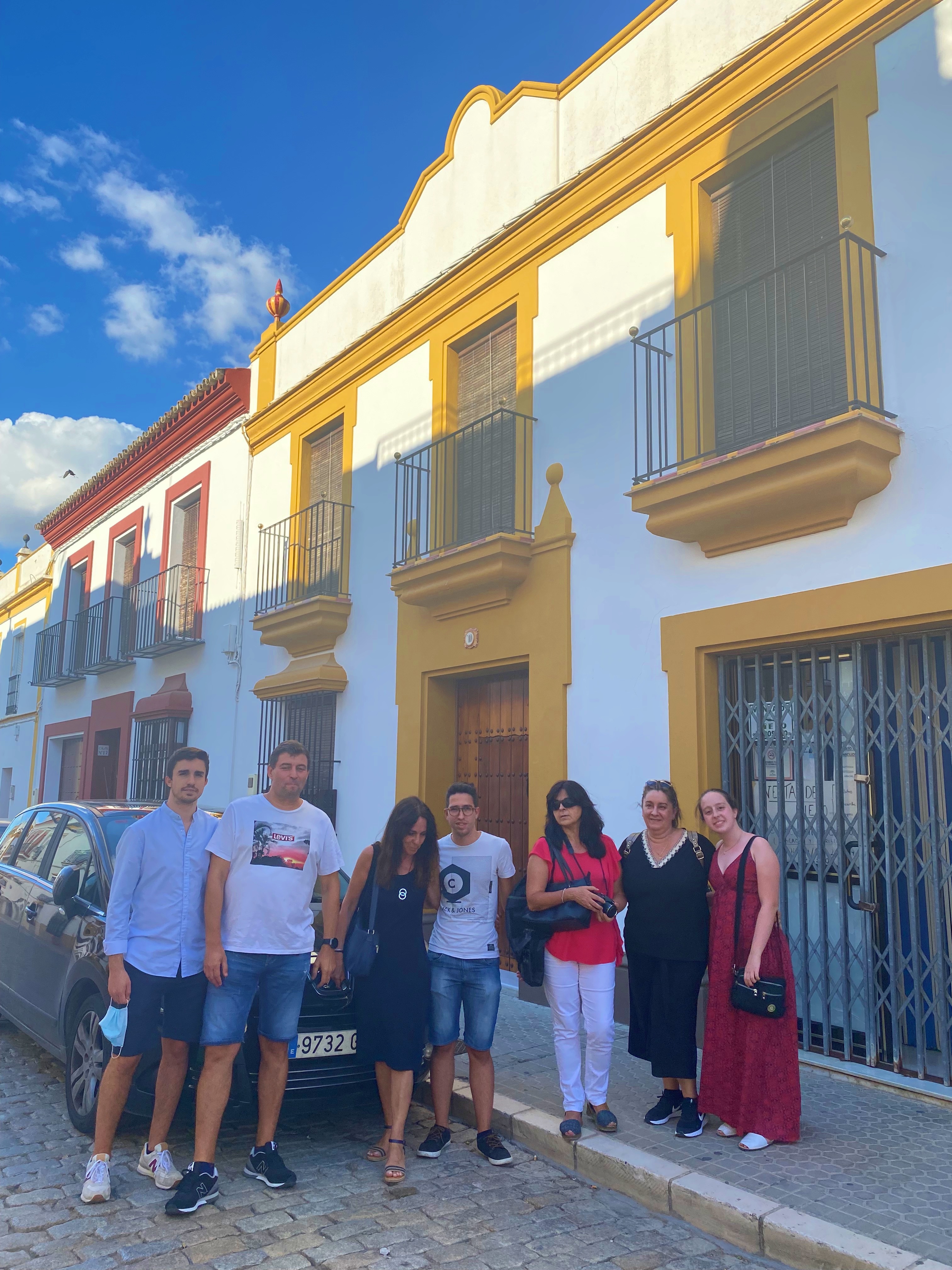 Sebastián Lora y Encarnación Rodríguez cerraron el bar que tenían en la Carrera y emigraron a Barcelona en 1955. Los Mangarra, que era su mote, iban con los diez hijos que tenían. Sesenta y seis años después, tres de sus nietas (Encarna, Inma y Eli) y varios biznietos visitan por primera vez Fuentes en busca de sus raíces familiares. Se sienten Mangarras como los que emigraron a mediados del siglo pasado, aunque sus apellidos sean una mezcla de Lora y Font. Sienten y hablan en catalán, pero vibran con una sardana igual que con una sevillana. Crecieron con una nana que le arrullaba al oído el nombre de Fuentes de Andalucía y esta semana han recorrido sus calles en busca de los ecos de aquella canción de cuna que les hablaba de la Carrera, de las máscaras del carnaval, del paseíto de la Plancha, de los vecinos, de la Aurora, del jueves lardero...