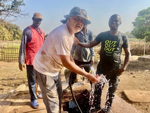 Sí, existe este héroe en Bafatá y mora en Radio Mulher. Cada día baja al río Geba. No es una invención del poder ni del pueblo, es un ser mortal como tú y como yo, pero parece estar hecho de otra materia. Es incansable trabajando a orillas del río perforando la tierra en busca de algo tan necesario como es el agua que las mujeres necesitan para los huertos y que hasta ahora tenían que transportar cubo a cubo hasta los pequeños huertos, fuente principal de sustento para sus familias. Las mujeres, ya sabemos, sostienen el mundo.