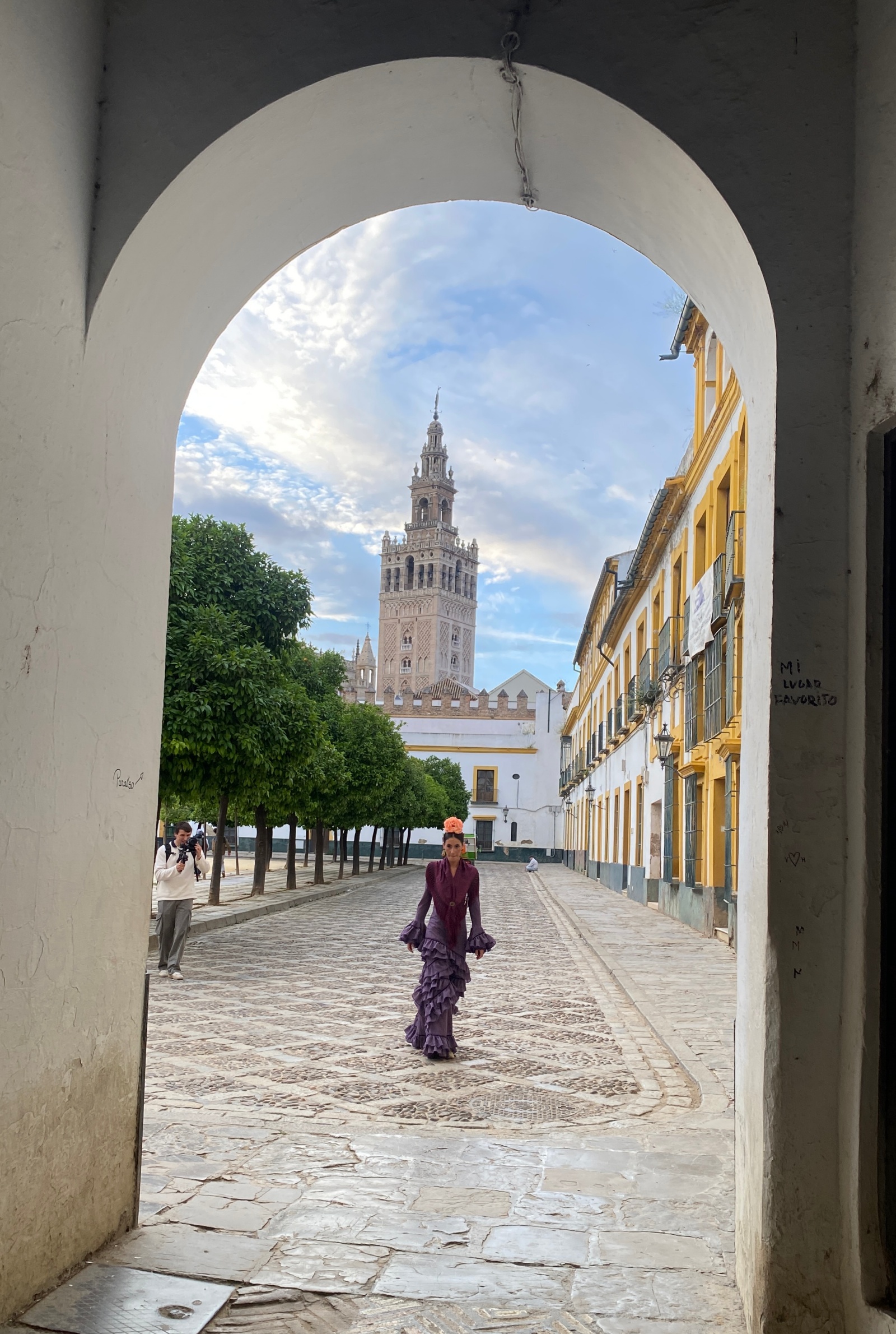 Sevilla es bella por derecho propio y por querencia. Bécquer de su glorieta del parque camino del real proclama esa pasión sin medida tan sevillana: "Pero mudo y absorto y de rodillas, / como se adora a Dios ante su altar, / como yo te he querido..., desengáñate, / ¡así no te querrán!". Sevilla abomina de la fría observación de la realidad y apunta a la fe sin condiciones. Nada que discutir cuando se cuenta Sevilla. Llega la feria y no hay otra con igual número de casetas, ni con mejor ambiente ni donde se baile mejor. Ni armonía más majestuosa que la cintura de esa señora que baila la sevillana de El Pali. "Sevilla tuvo una niña / Y le pusieron Triana" / Entre azahares y sábanas".